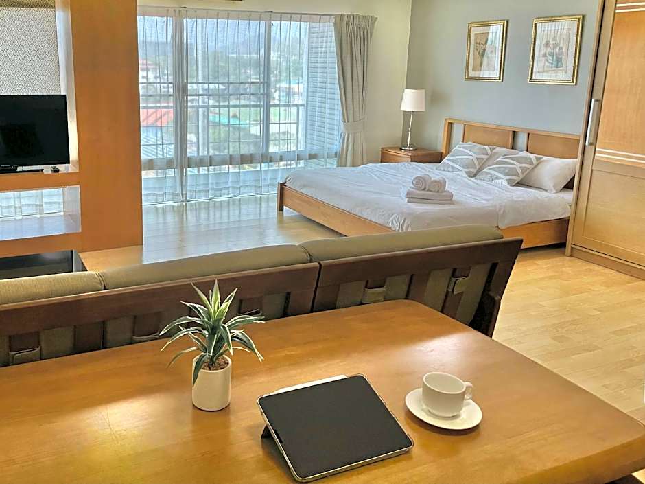 The fully equipped kitchen features a refrigerator, kitchenware, a microwave and an electric kettle. The spacious studio offers air conditioning, a seating area, a balcony with city views as well as a private bathroom featuring a bath. The unit offers 1 bed.
